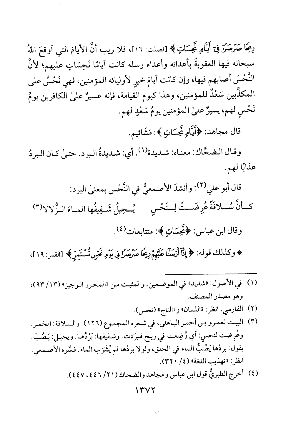 وقال ابن عباس: <نحسات >: متتابعات (4).