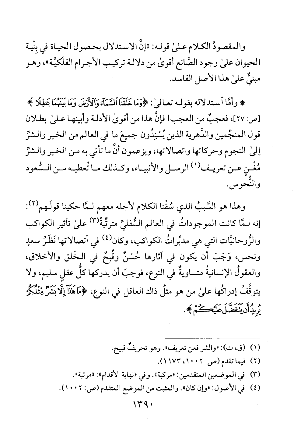 ا لحيوان على وجود الصانع أقوى من دلالة تركيب الاجرام الفلكية) "، وهو