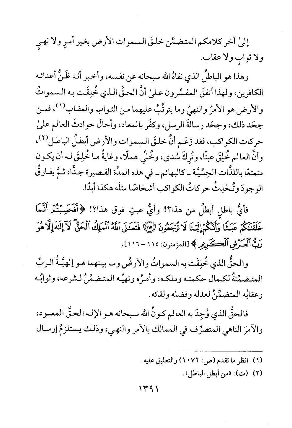 ظقنبهم عبثا و نك! إيخنا لاتزجعون! فحفلى الله لمك لحق لاإلهإلاهو