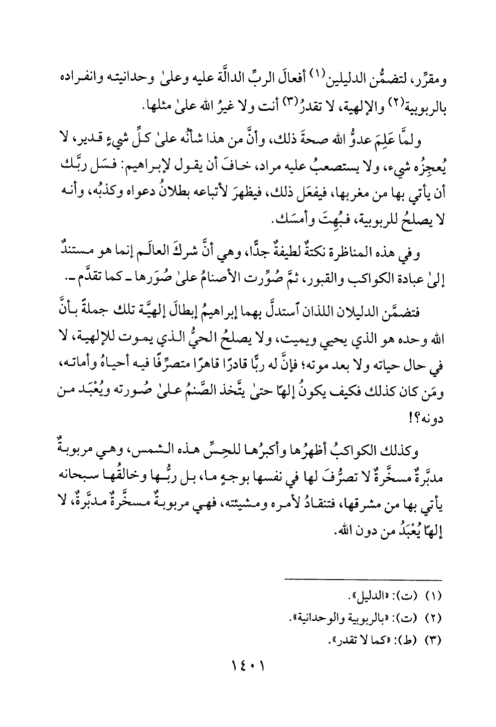 ومقرر، لتضمن الدليلين (1) أفعال الرب الدالة عليه وعلى وحدانيته وانفراده
