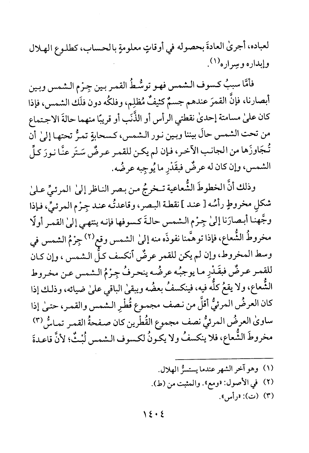 مخروط الشعاع، فإذا توهمنا نفوذه منه إلى الشمس وقع (2) جرم الشمس في