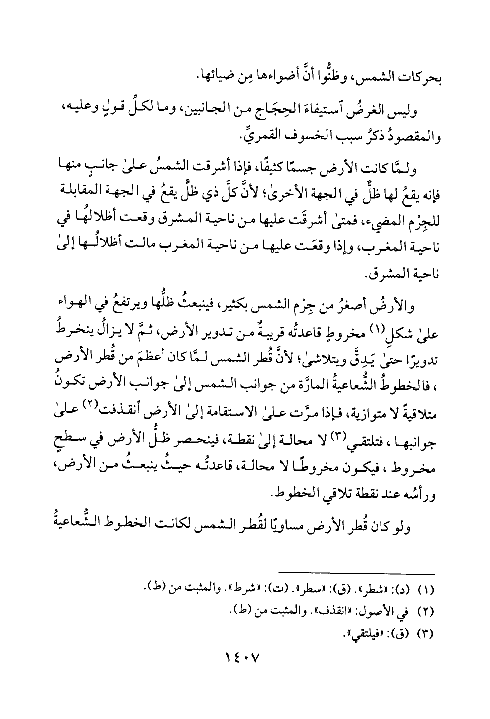 ولو كان قطر الارض مساويا لقظر الشمس لكانت الخطوط الشعاعية