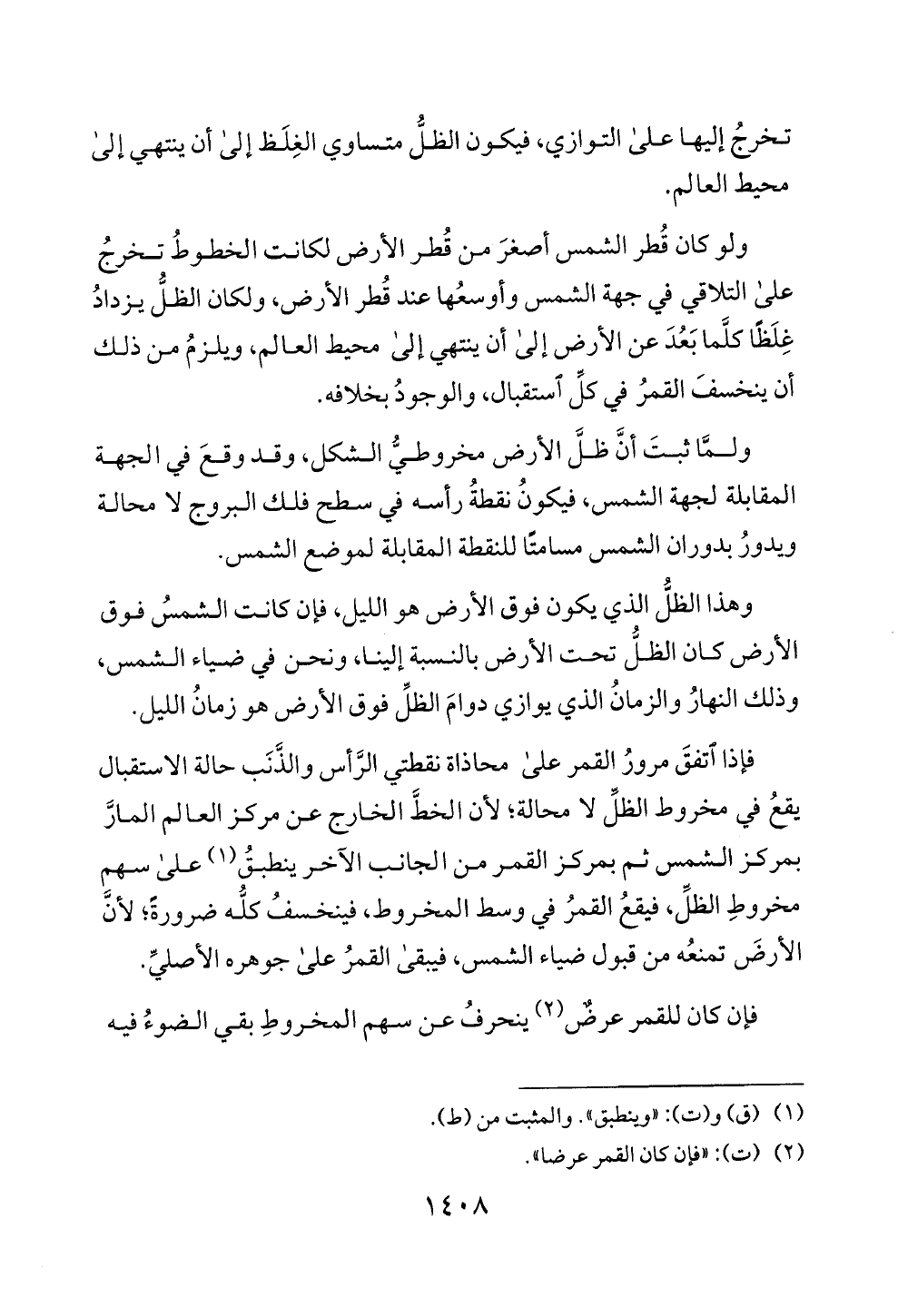 ولما ثبت أن ظل الارض مخروطي الشكل، وقد وقع في الجهة
