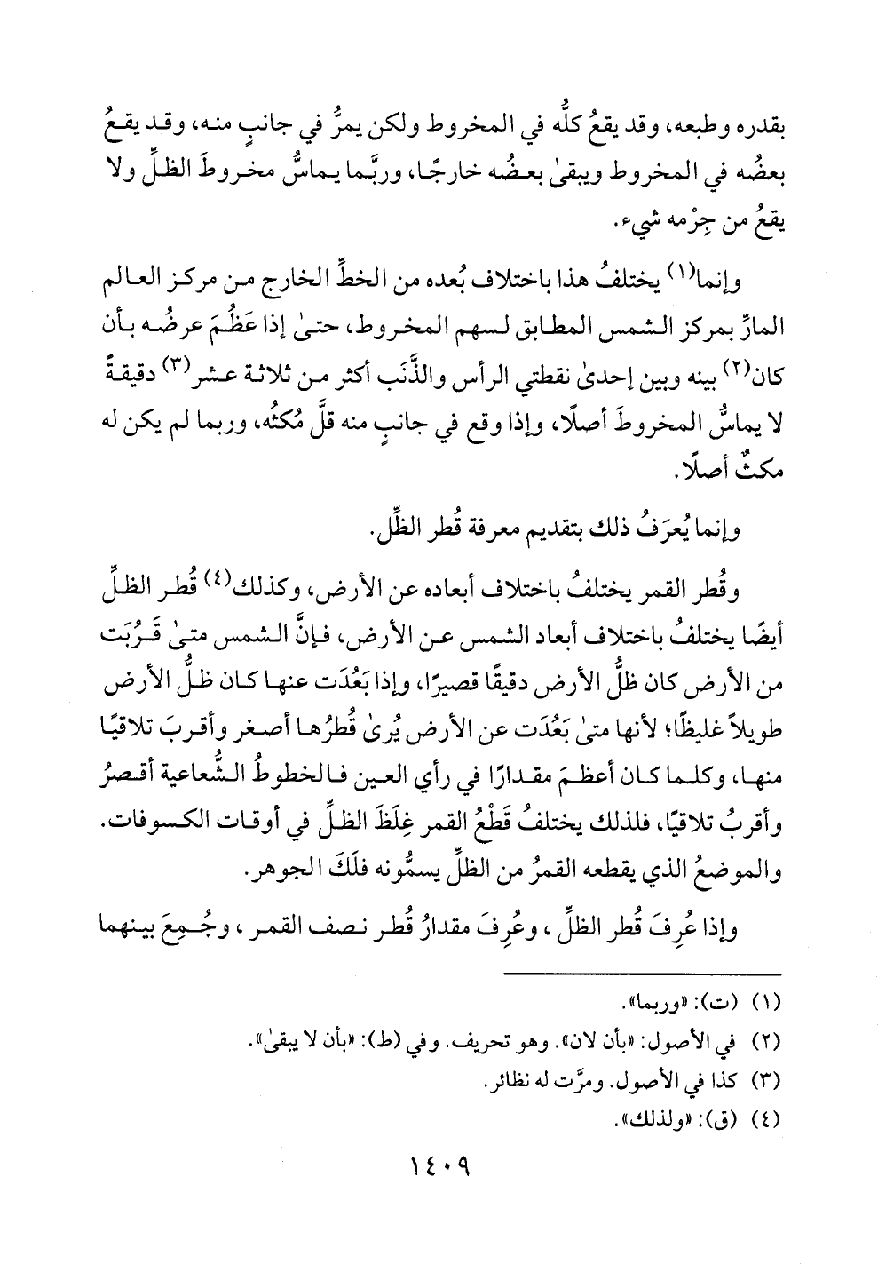 وقطر القمر يختلف باختلاف أبعاده عن الارض، وكذلك (4) قطر الظل