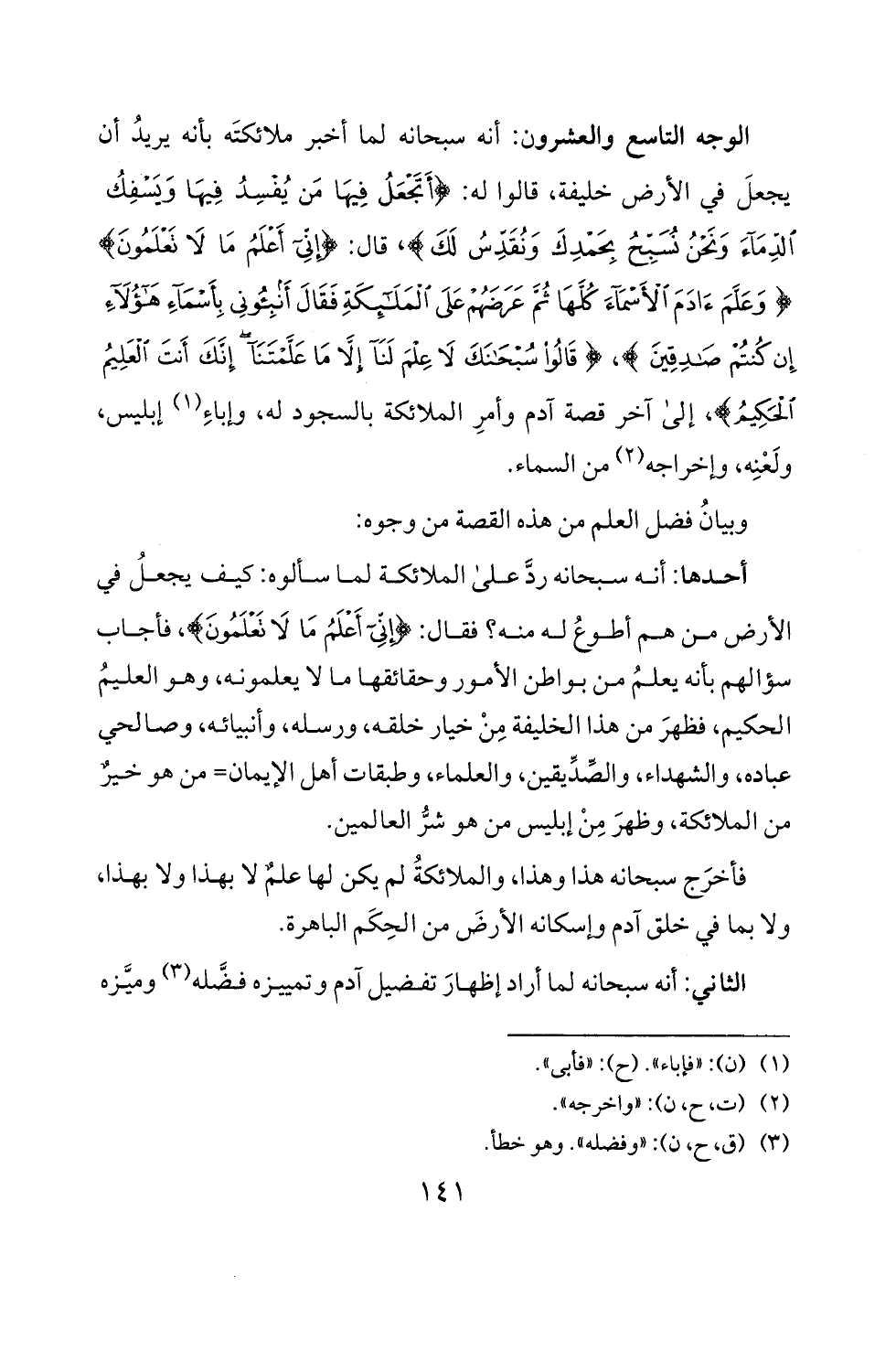 الوجه التاسع والعشرون: انه سبحانه لما اخبر ملائكته بانه يريد أ ن