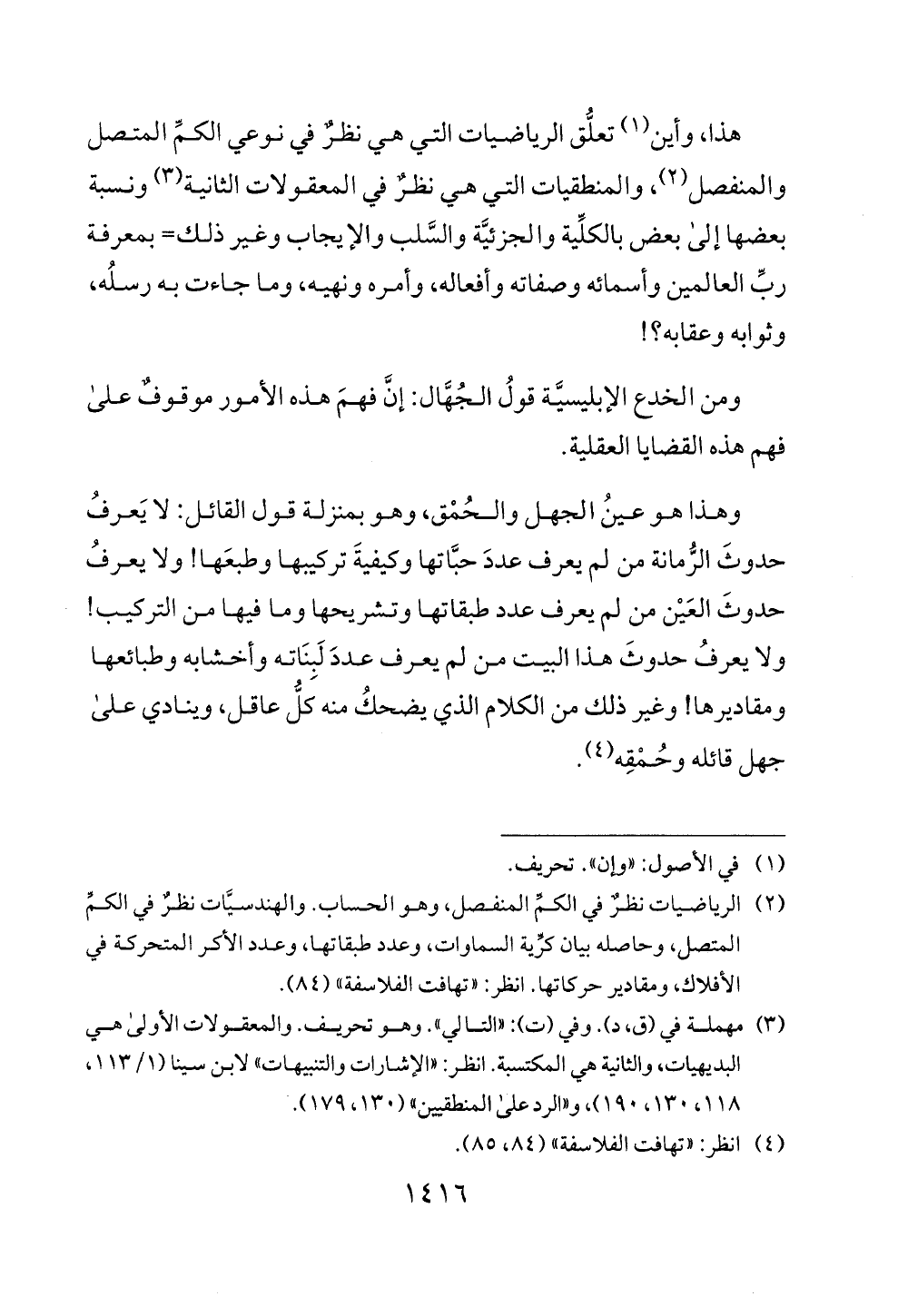 (4) انظر: " تهافت الفلاسفة " (84، 85).