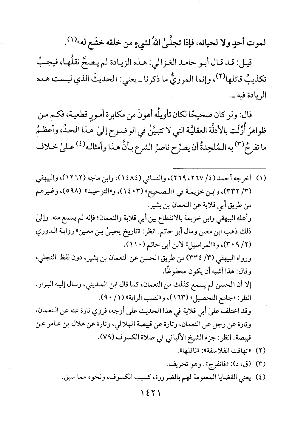ما تفرح (3) به الملحدة أن يصرح ناصر الشرع بان هذا وأمثاله (4) على خلاف