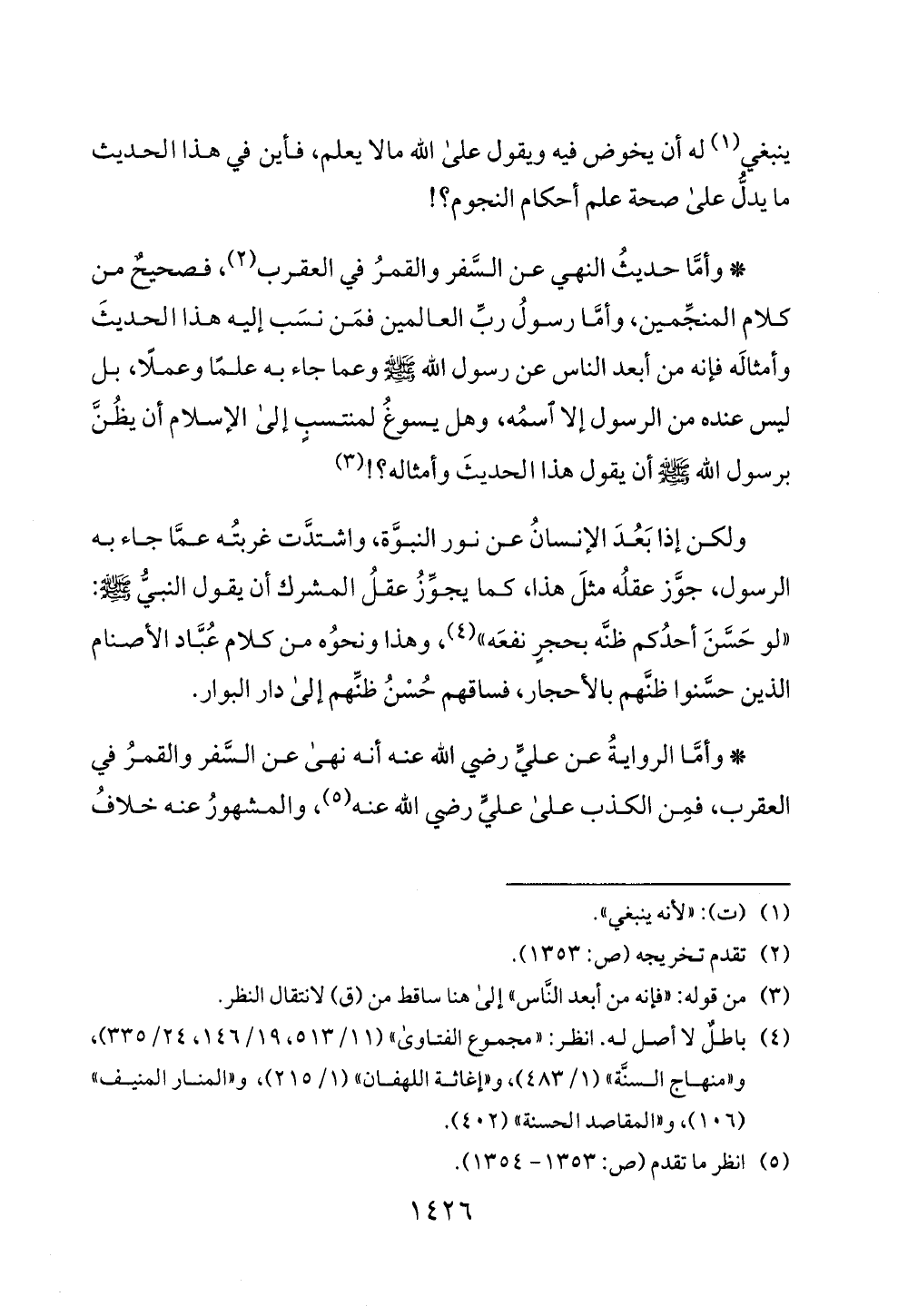 كلام المنجمين، وأما رسول رب العالمين فمن نسب إليه هذا ا لحديث