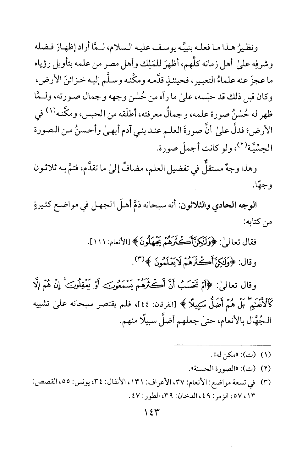 الوجه الحادي والثلاثون: أنه سبحانه ذم اهل ا لجهل في مواضع كثيرة