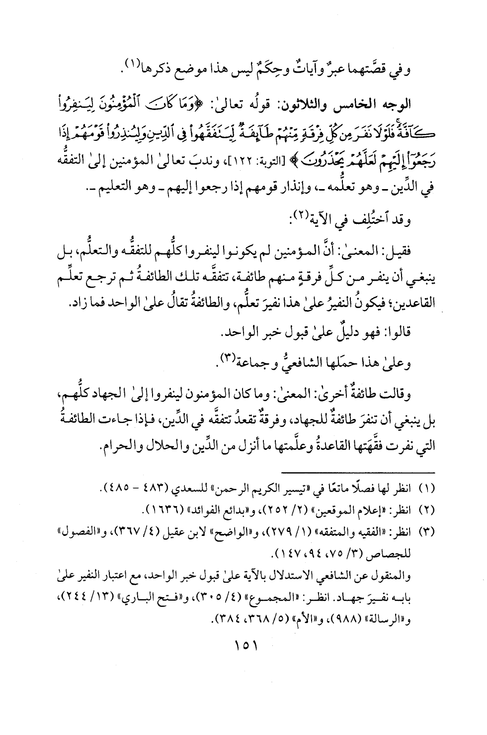 ينبغي أن ينفر من كل فرقة منهم طائفة، تتفقه تلك الطائفة ثم ترجع تعلم