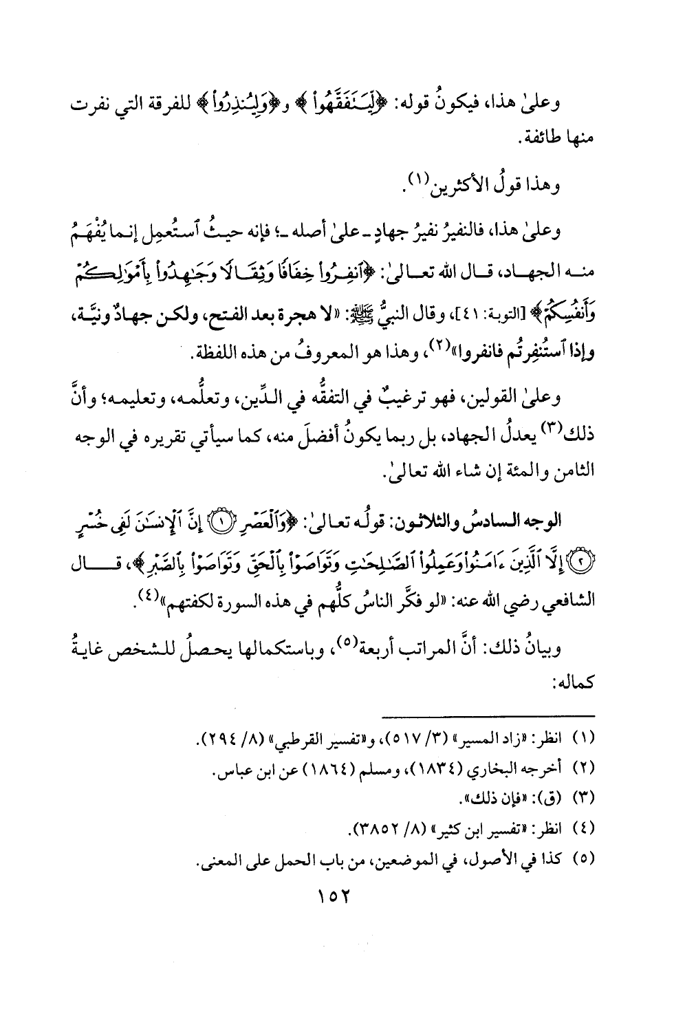 وعلى هذا، فيكون قوله:! فنققهوا) و<ولينذرو > للفرقة التي نفرت