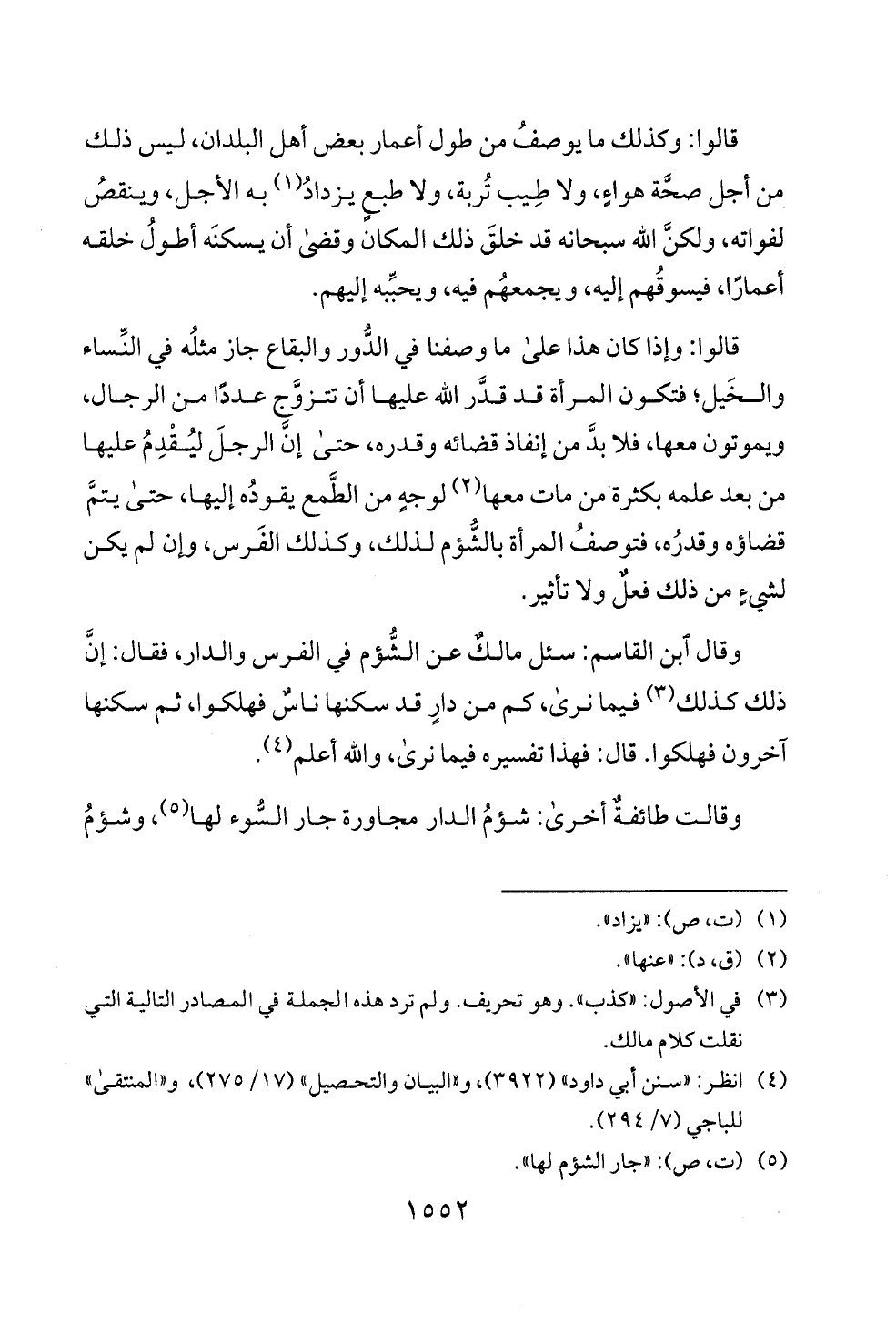 وقال ابن القاسم: سئل مالك عن الشؤم في الفرس والدار، فقال: إ ن