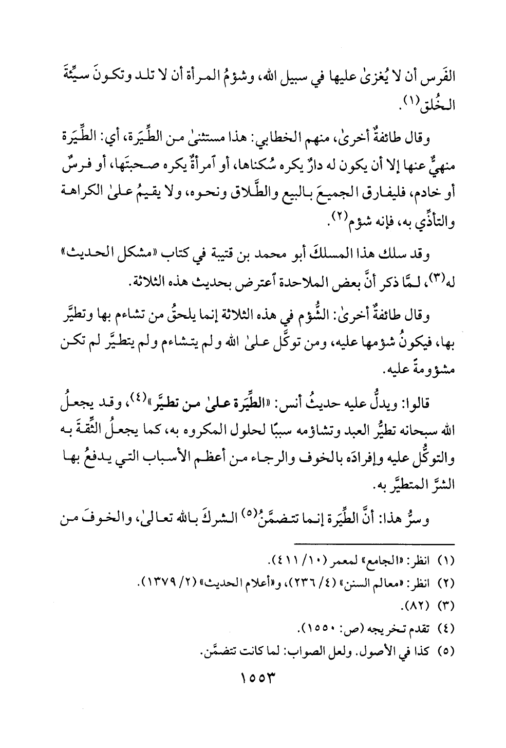 وقال طائفة أخرى، منهم ا لخطا بي: هذا مستثنى من الطيرة، أي: الطرة