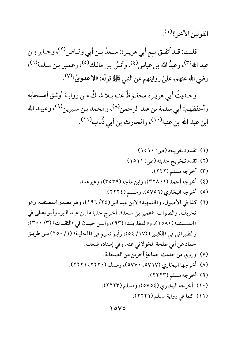 رضي الله عنهم، على روايتهم عن النبي! ك! ي! قوله: " لا عدوى) " (7).
