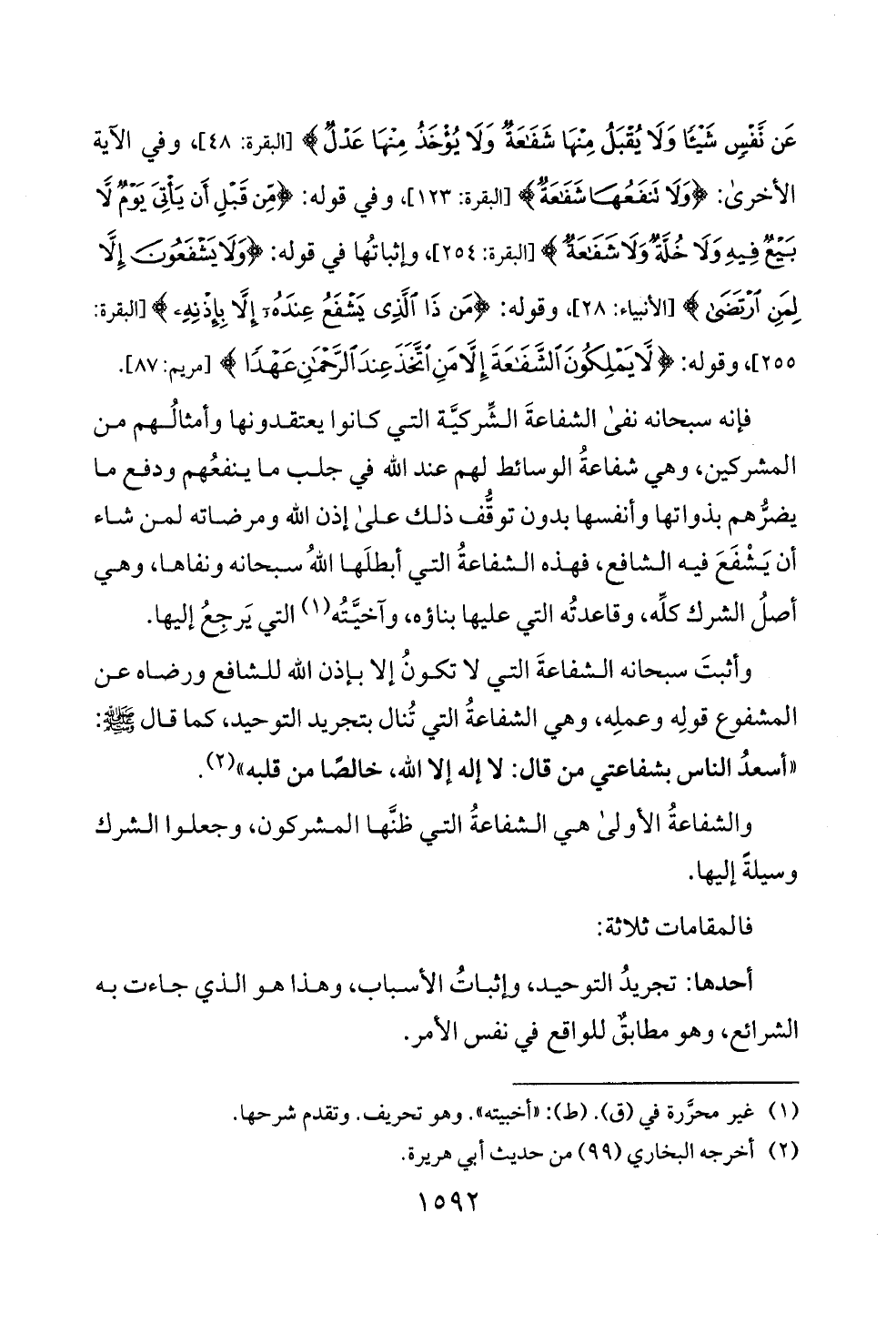 بئع فيه ولا ختما ولاشفعة) [البقرة: 254]، وإثباتها في قوله: <ولالمجشفعوت إلا