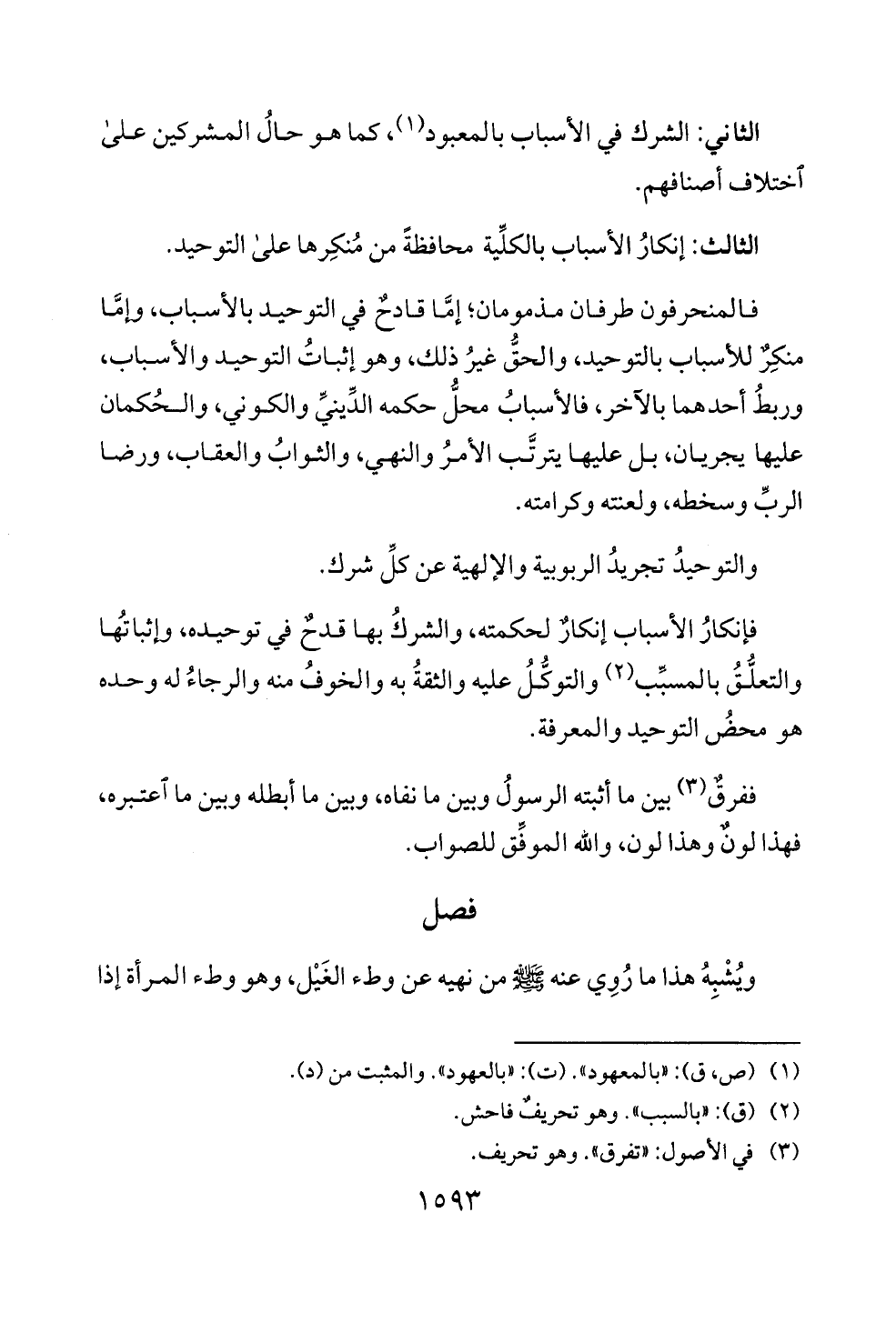 الثالث: إنكار الاسباب بالكلية محافظة من منكرها على التوحيد.