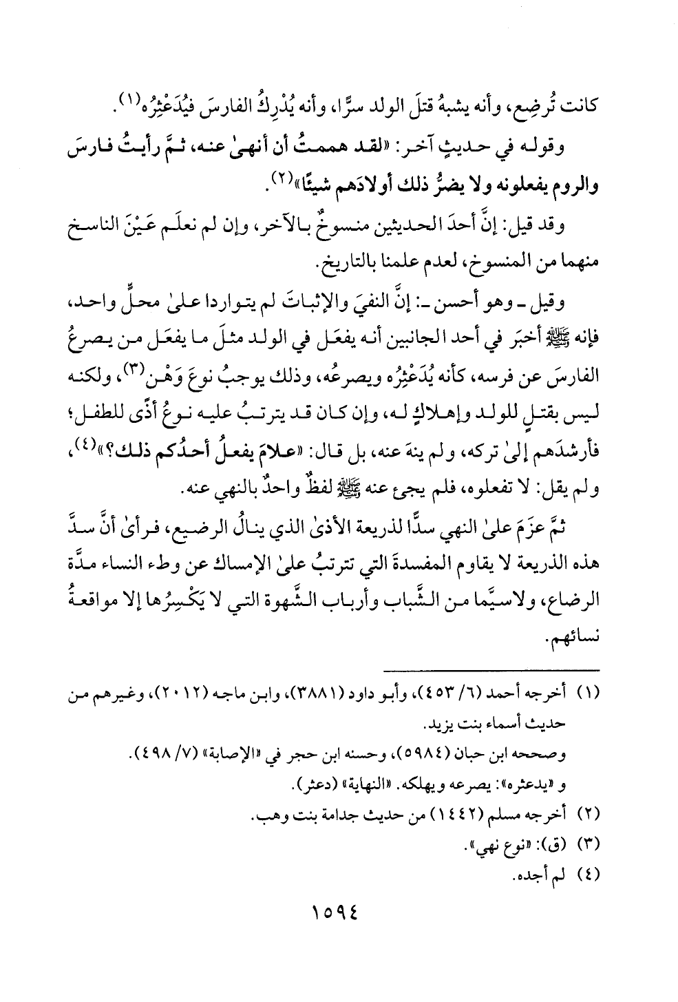 (2) اخرجه مسلم (42 4 1) من حديث جدامة بنت وهب.