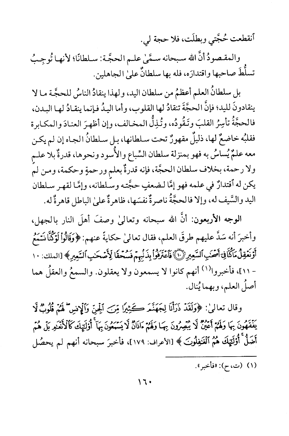 والمقصود أن الله سبحانه سمى علم الحجة: سلطانا؛ لانها توجب