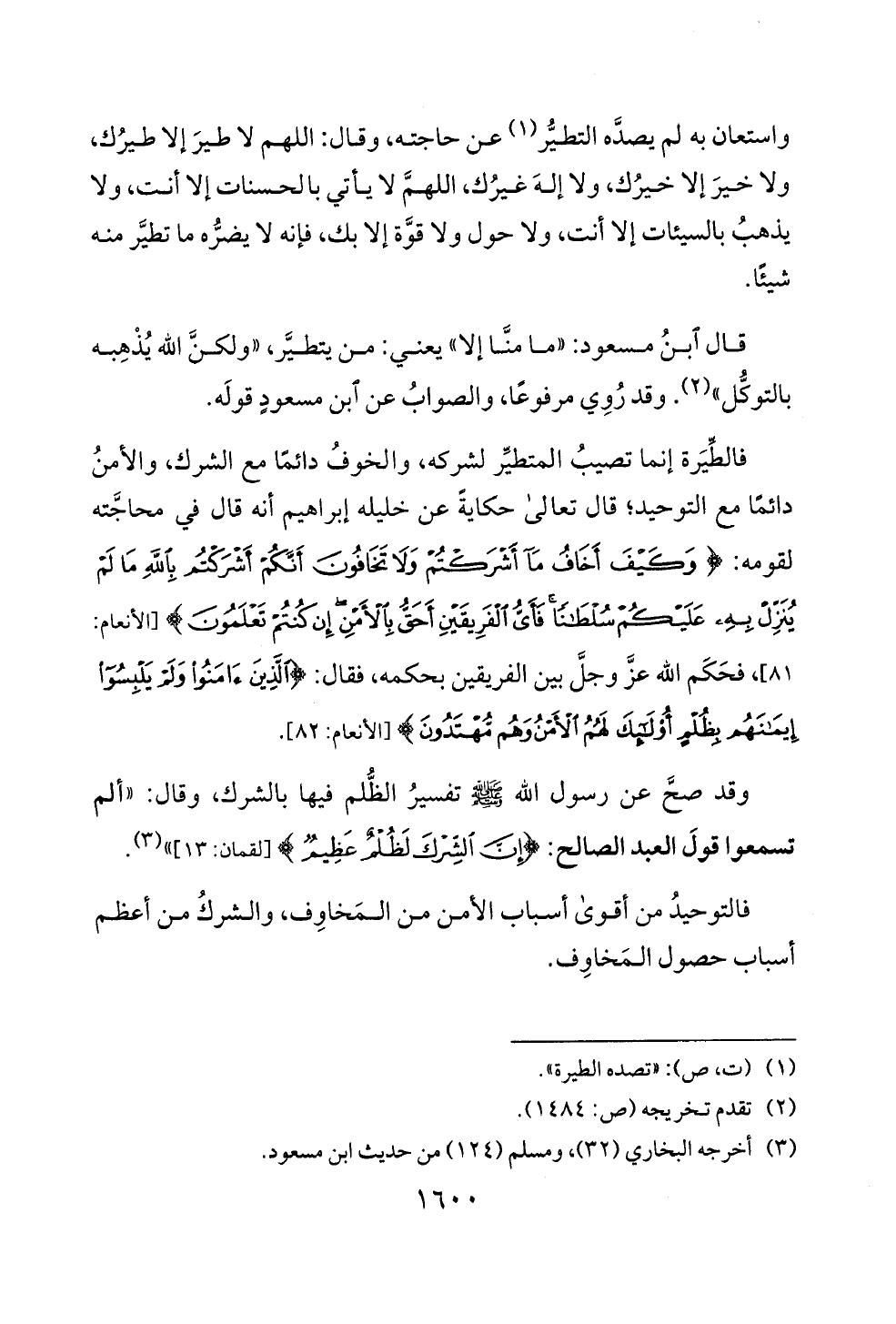 قال بن مسعود: "ما منا إلا" يعني: من يتطير، "ولكن الله يذهبه