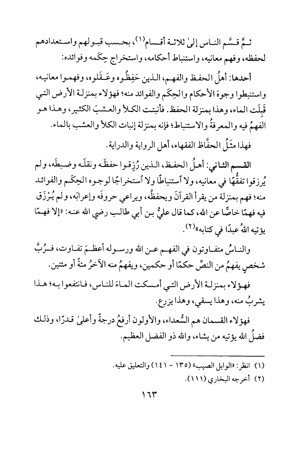 واستنبطوا وجوه الاحكام و لحكم و [لفوائد منه؛ فهؤلاء بمنزلة الارض التي