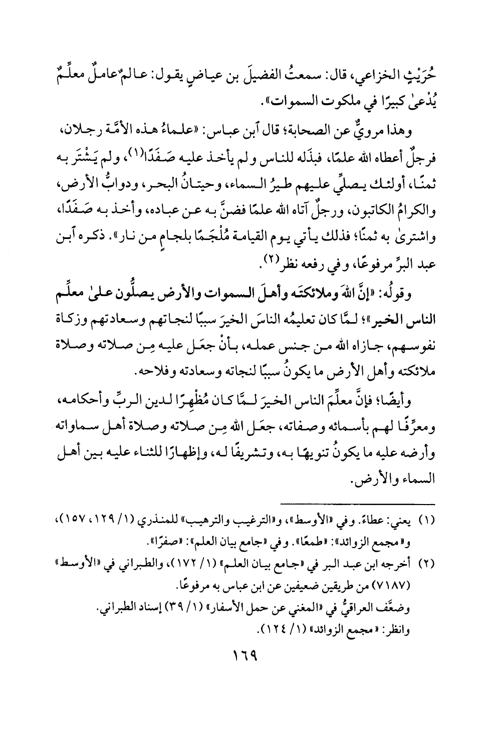 (2) اخرجه ابن عبد البر في "جامع بيان العلم " (1/ 172)، والطبراني في " الاوسط"