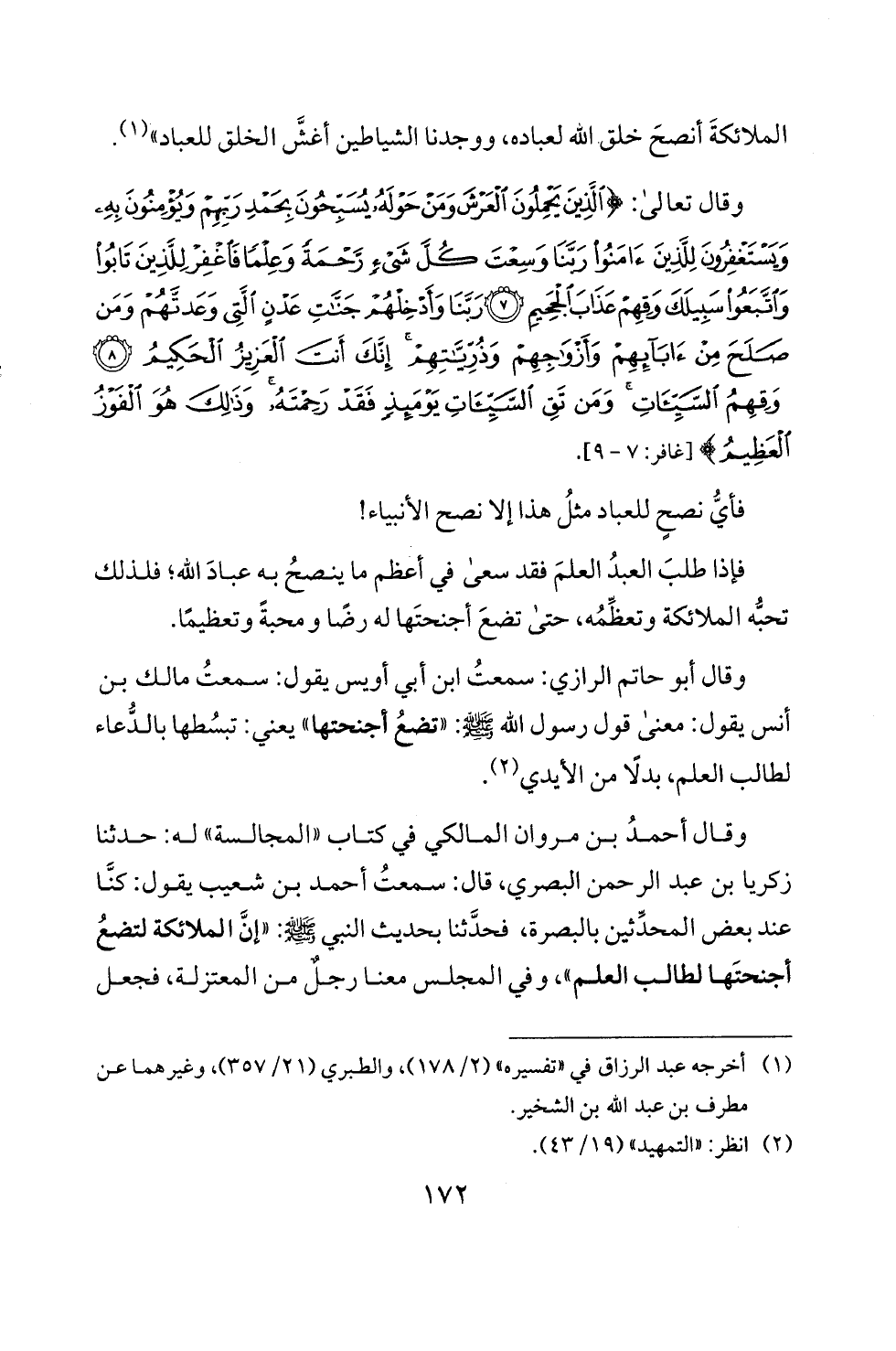 اجنحتها لطالب العلم "، وقي المجلس معنا رجل من المعتزلة، فجعل