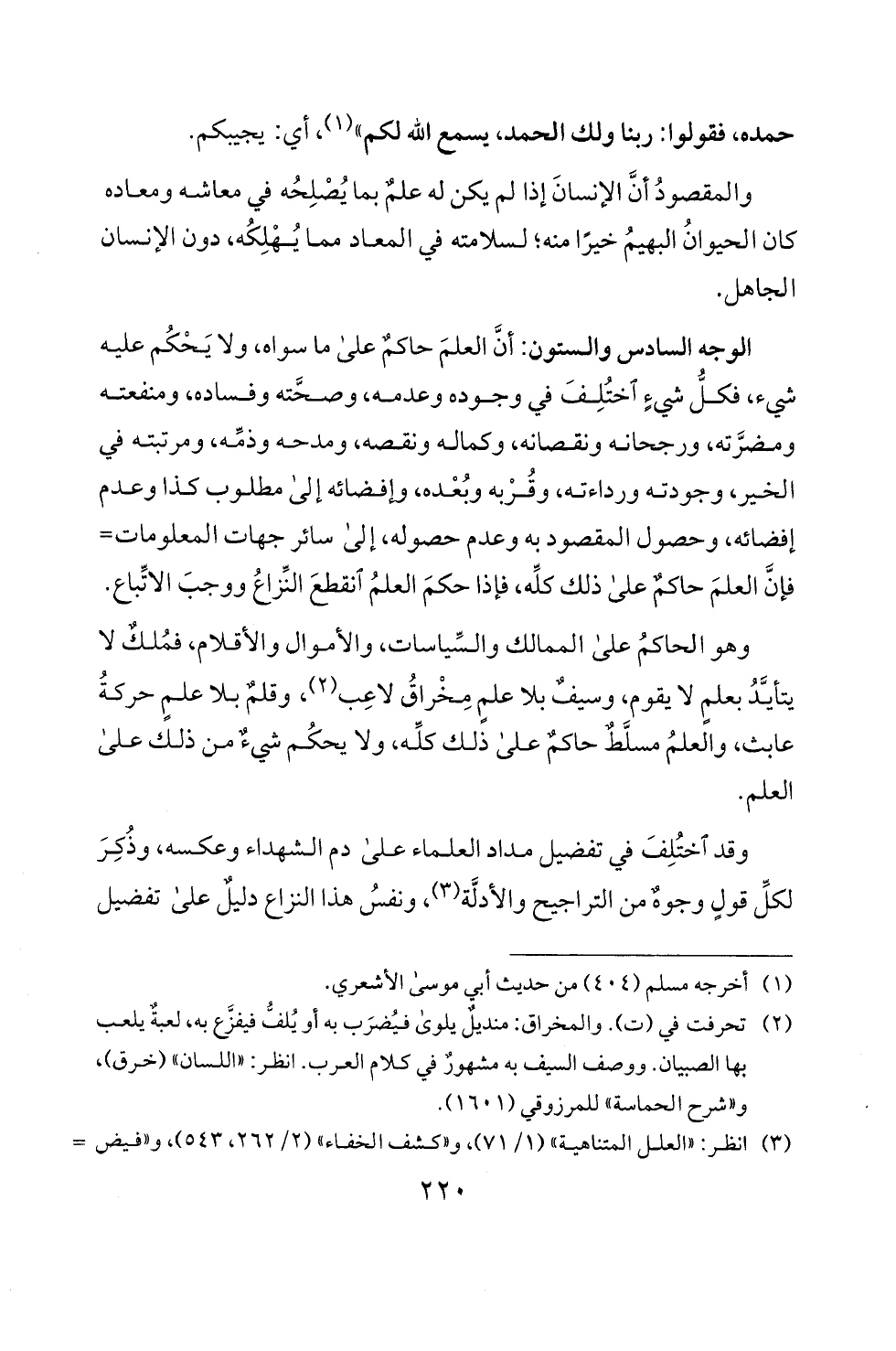 وقد ختلف في تفضيل مداد العلماء على دم الشهداء وعكسه، وذكر