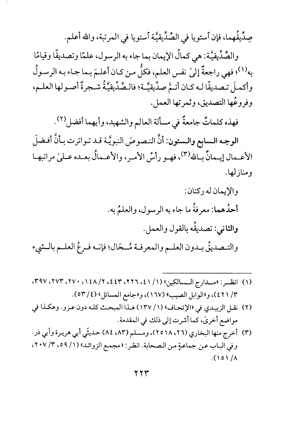 وأكمل تصديقا له كان أتم صديقية؛ فالصديقية شجرة أصولها العلم،