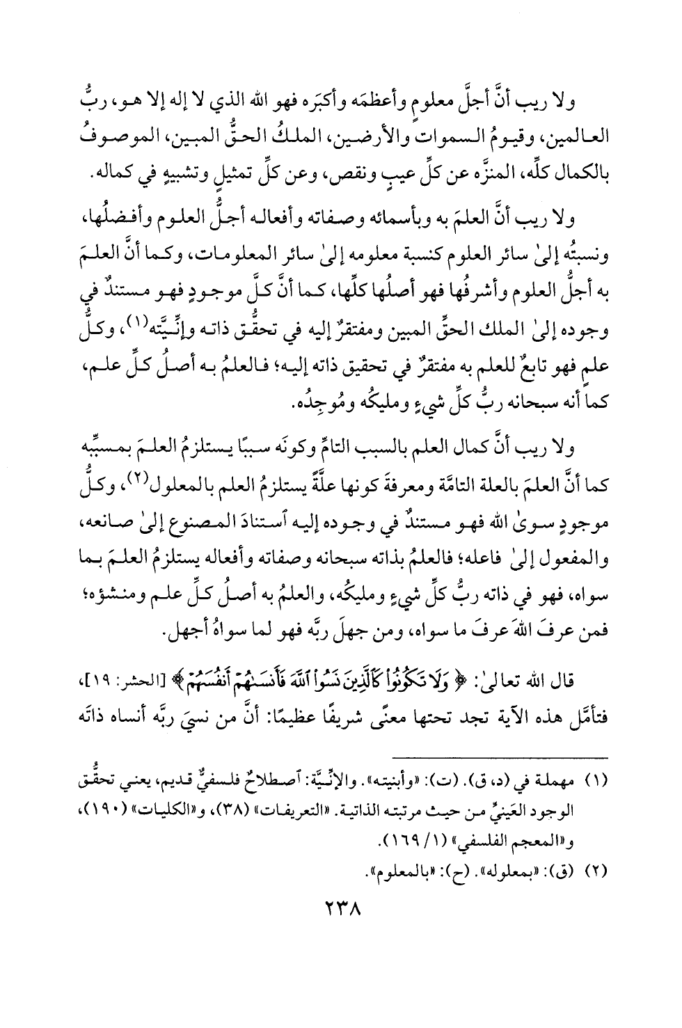 (2) (ق): " بمعلوله ". (ح): "بالمعلوم ".