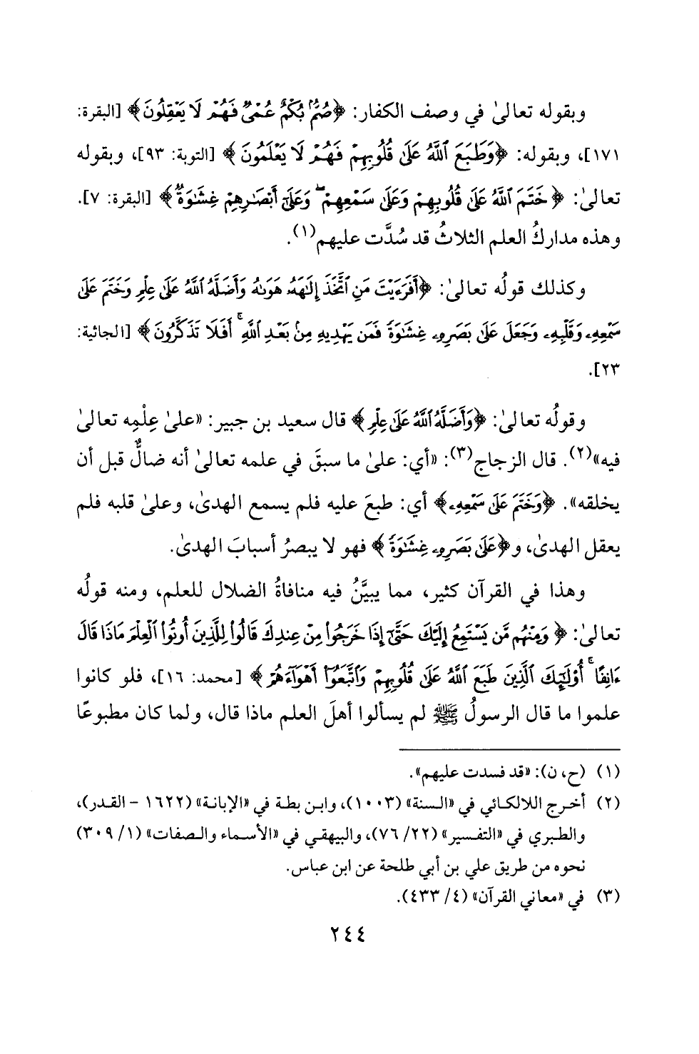 171]، وبقوله: <وطبع لئه على قلوبهتم فهم لا يعلمون > [التوبة: 93]، وبقوله