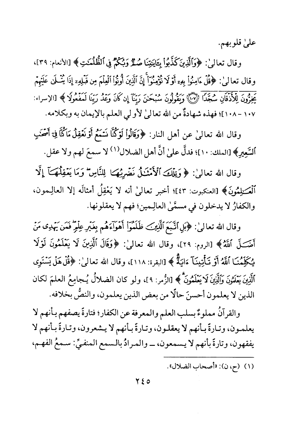 اضل الله > [الروم: 29]، وقال الله تعالى: <وقال الذين لا يعلمون لؤلا