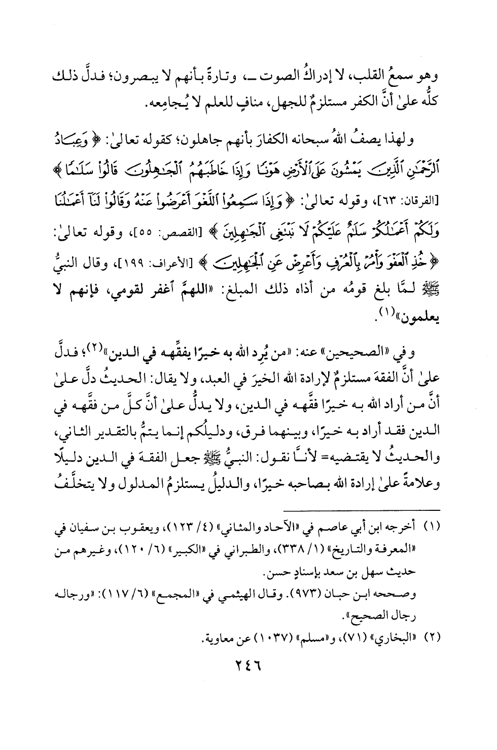 ولهذا يصف الله سبحانه الكفار بأنهم جاهلون؛ كقوله تعا لى: < و! اد
