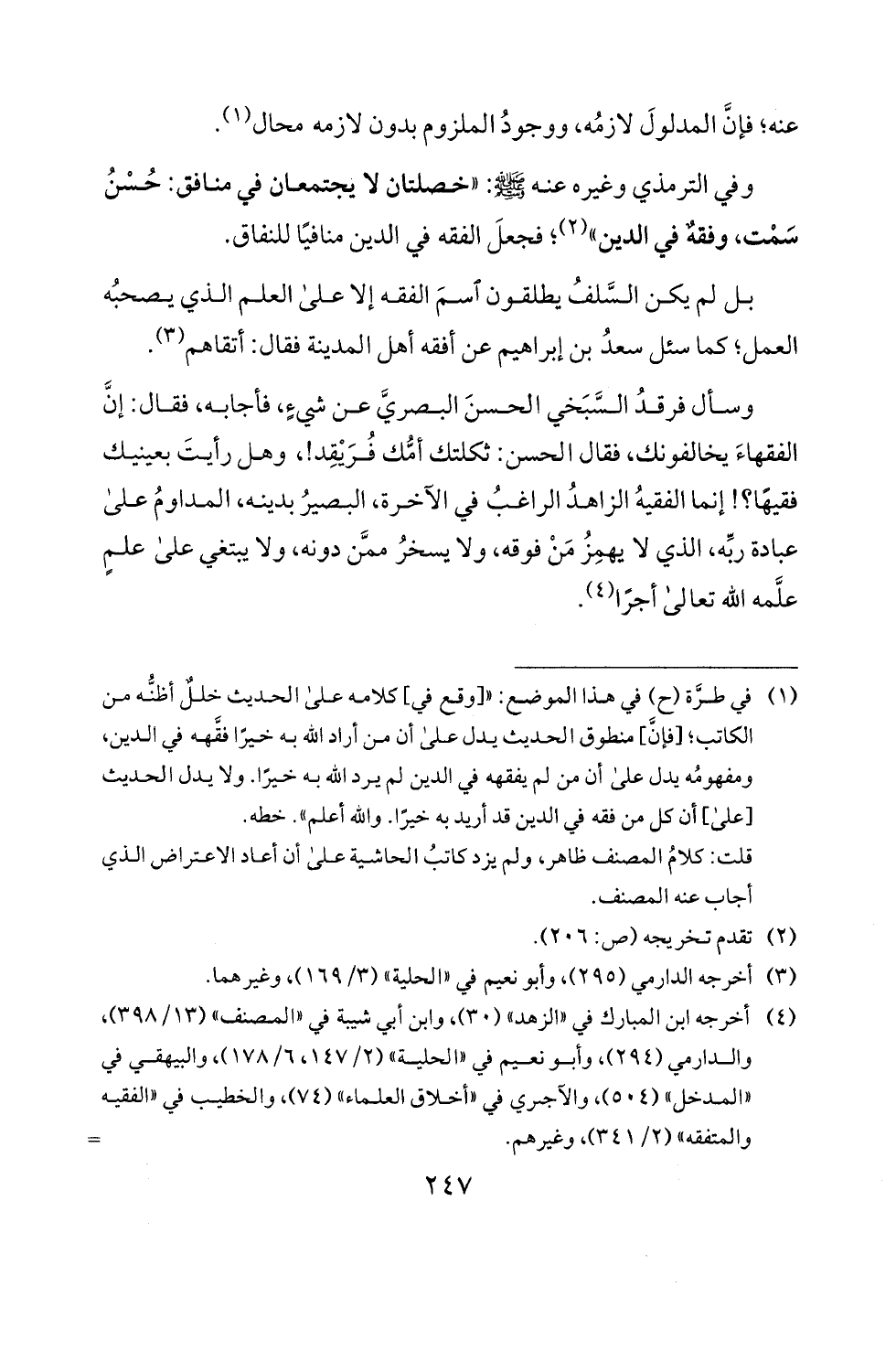 سمت، وفقه في الدين " (2)؛ فجعل الفقه في الدين منافيا للنفاق.