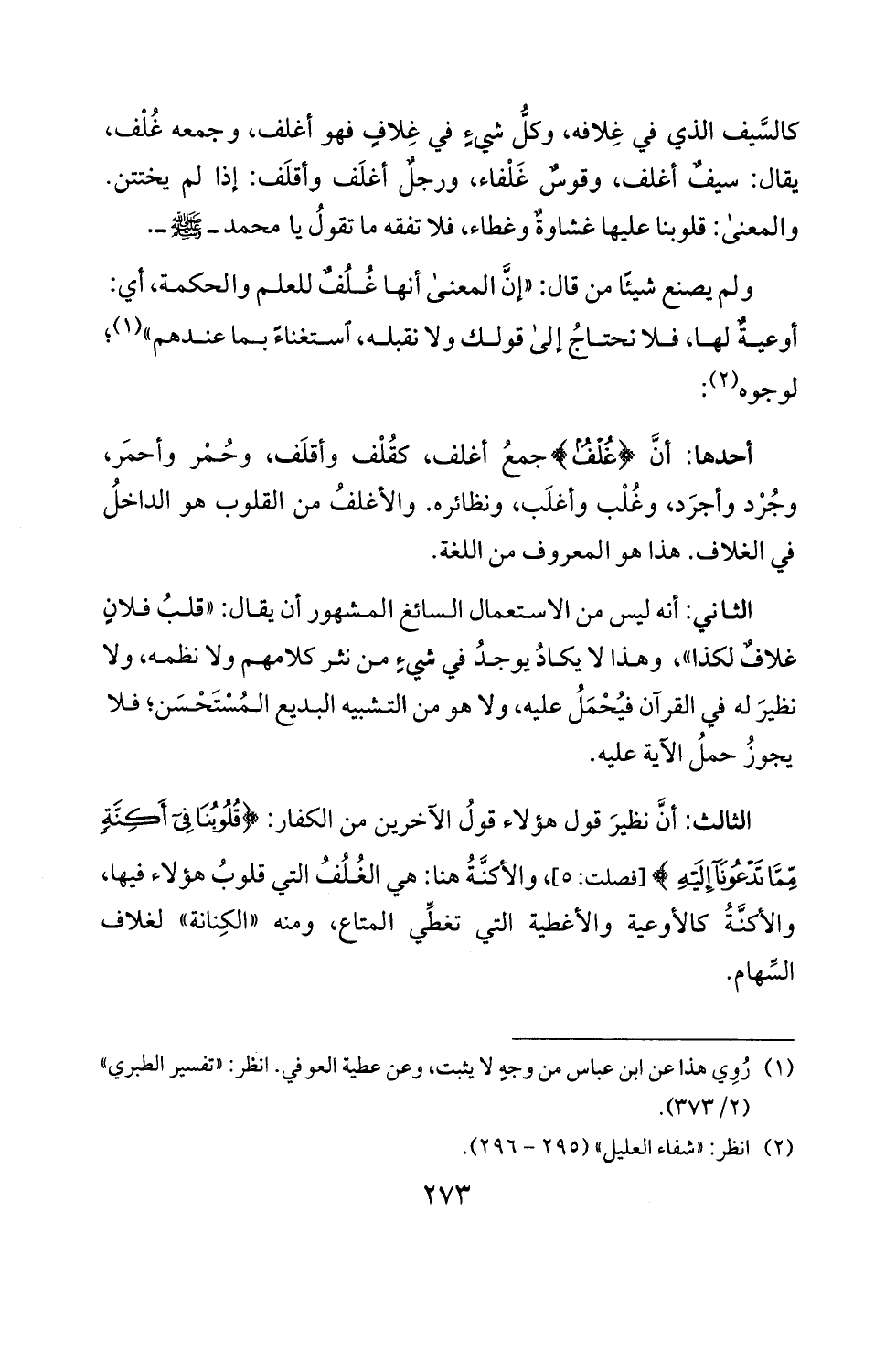 ولم يصنع شيئا من قال: "ان المعنى أنها غلف للعلم وا لحكمة، ي: