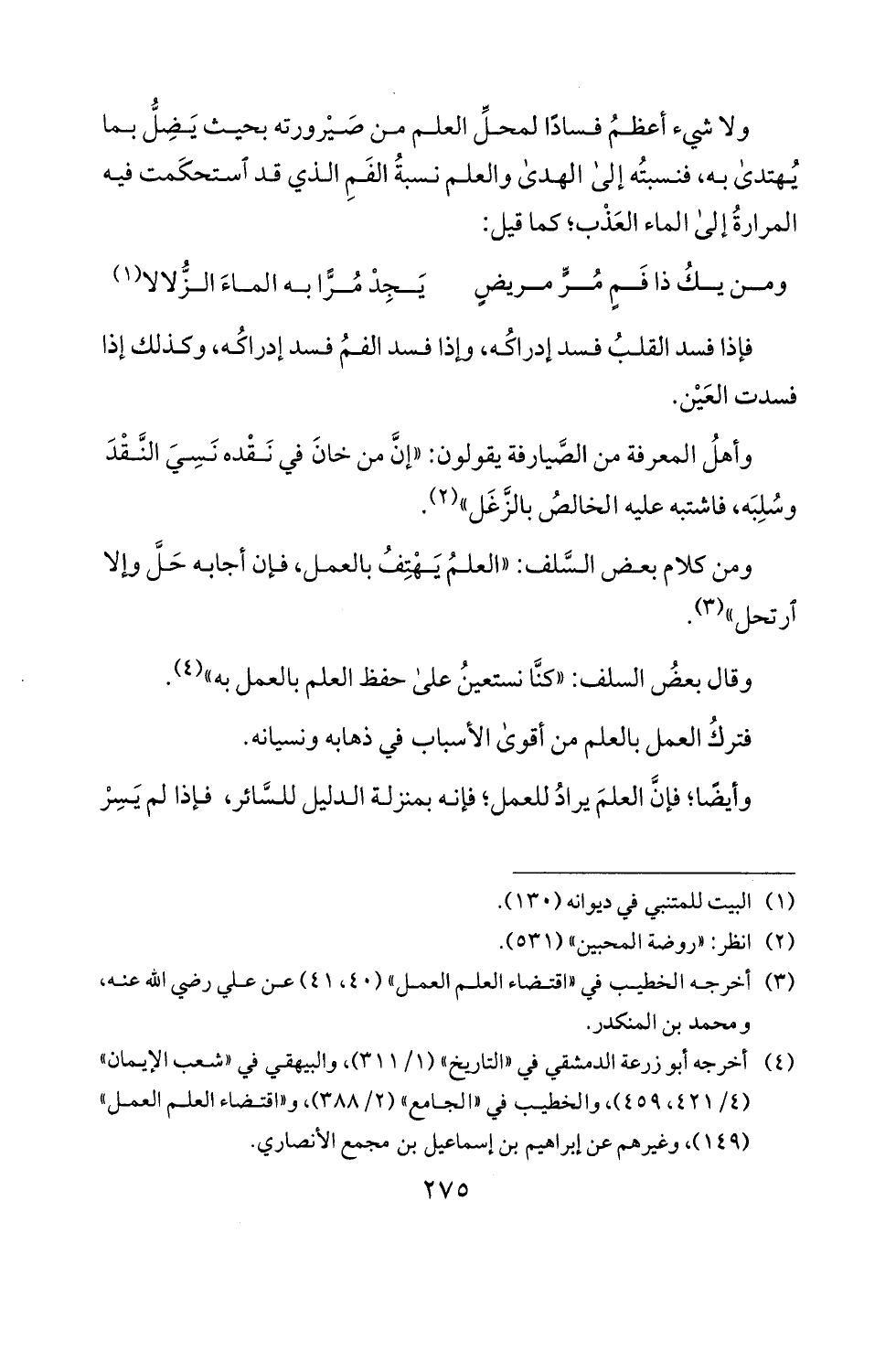 ولا شيء أعظم فسادا لمحل العلم من صيرورته بحيث يضل بما