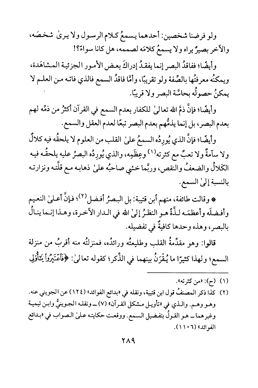 * وقالت طائفة، منهم ابن قتيبة: بل البصر أفضل (2)؛ فإن أعلى النعيم