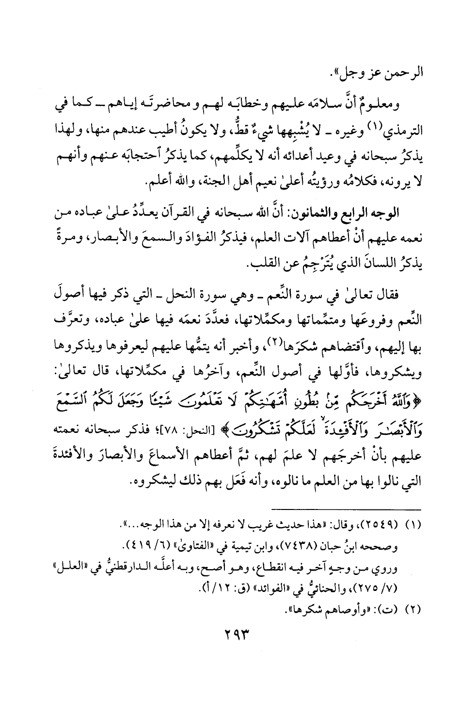 والأ! ر و لأفده! لعلكم لمحمثكرون > [العحل: 78]؛ فذكر سبحانه نعمته