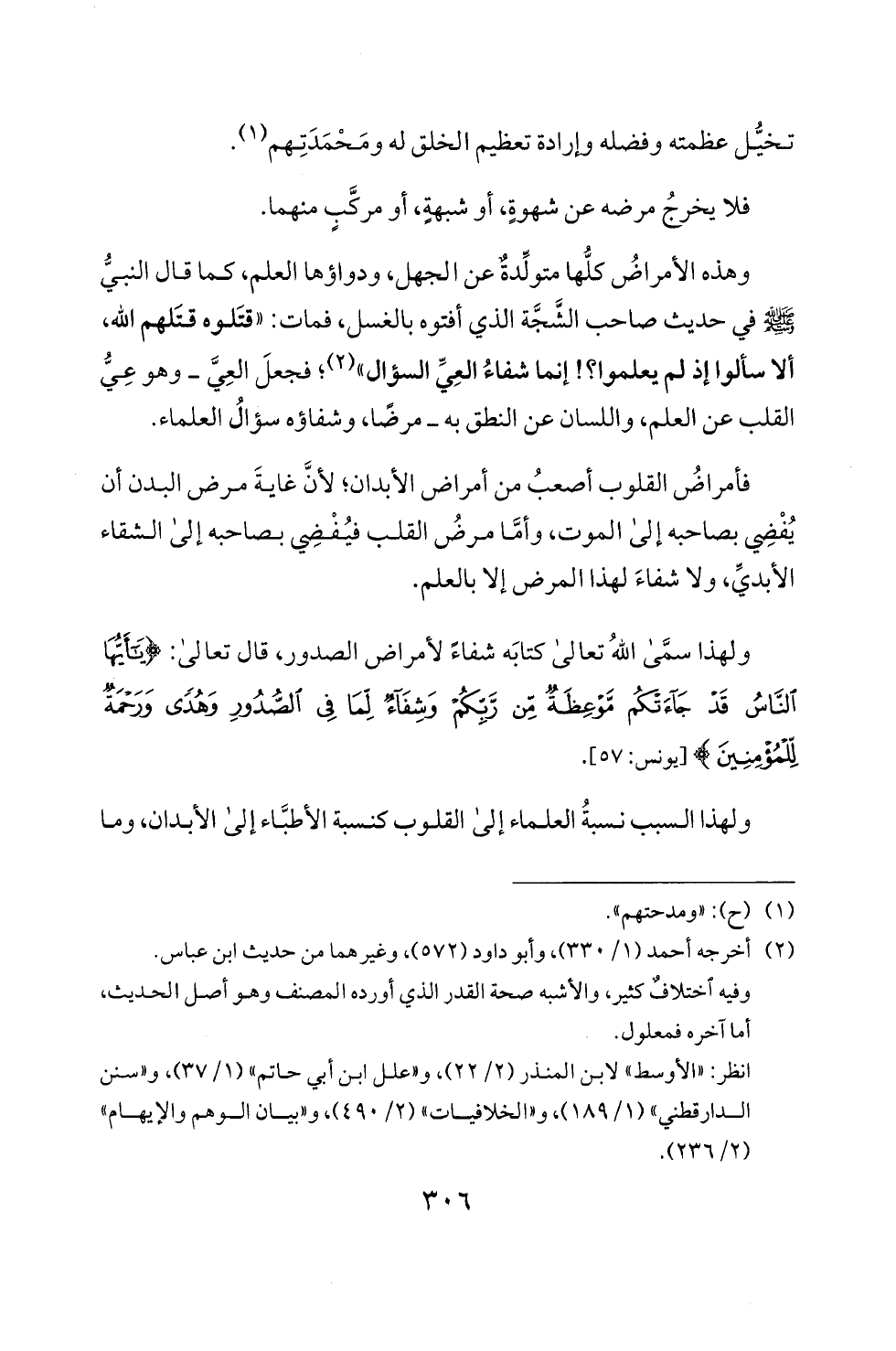 ولهذا سمى الله تعالى كتابه شفاء لامراض الصدور، قال تعا لى: <يأيها