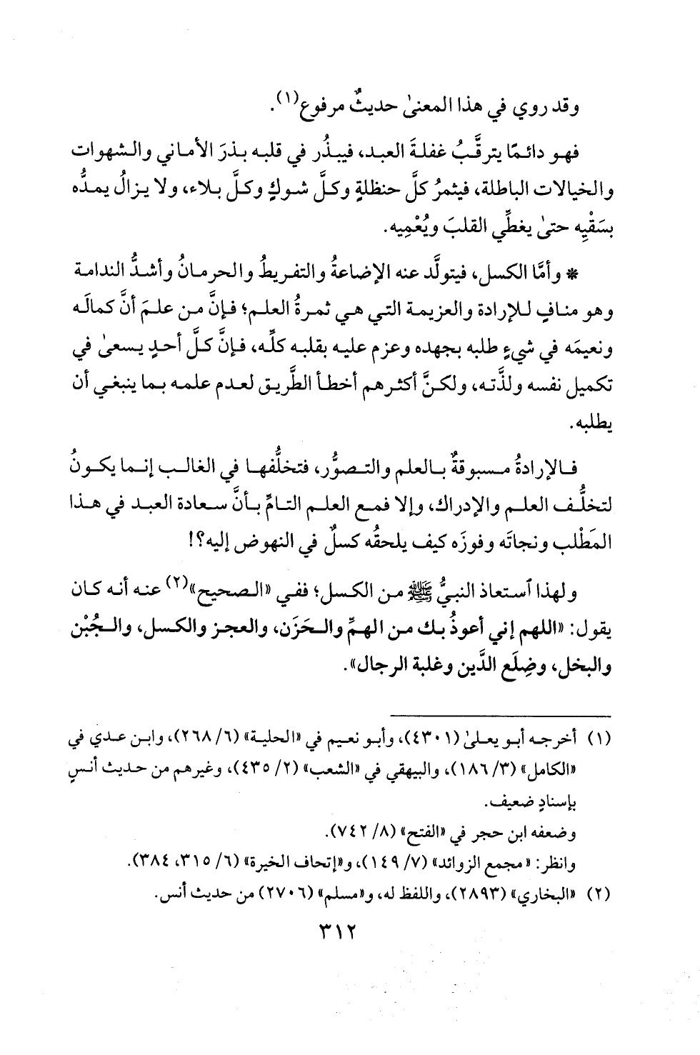 ولهذا استعاذ النبي عقي! من الكسل؛ ففي "الصحيح " (2) عنه انه كان