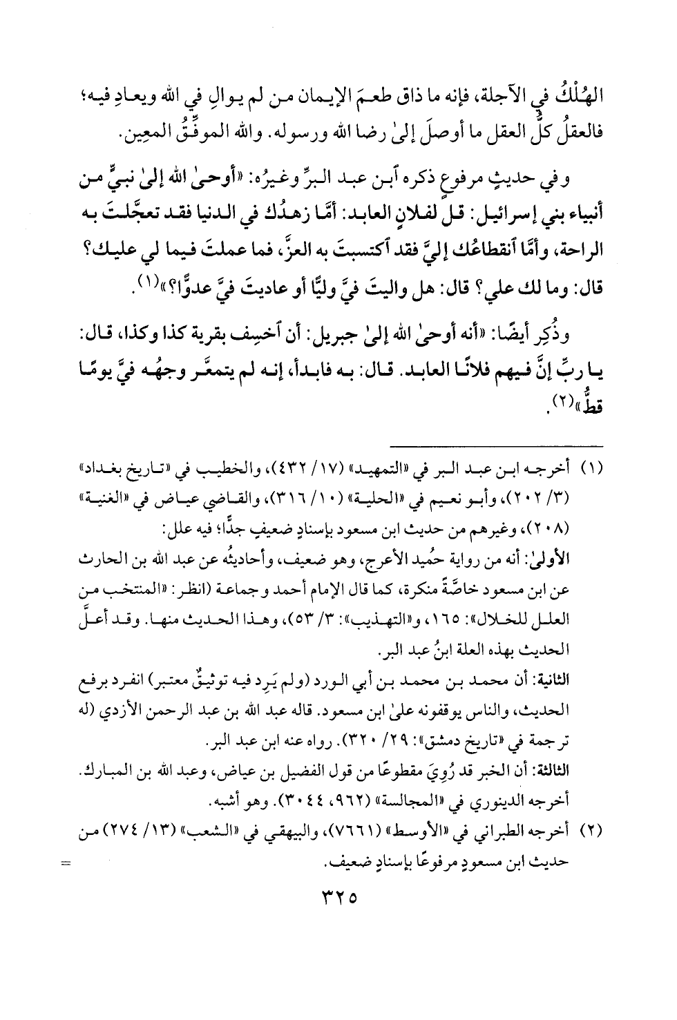 وفي حديث مرفوع ذكره بن عبد البر وغيره: "أوحى الله الى نبي من