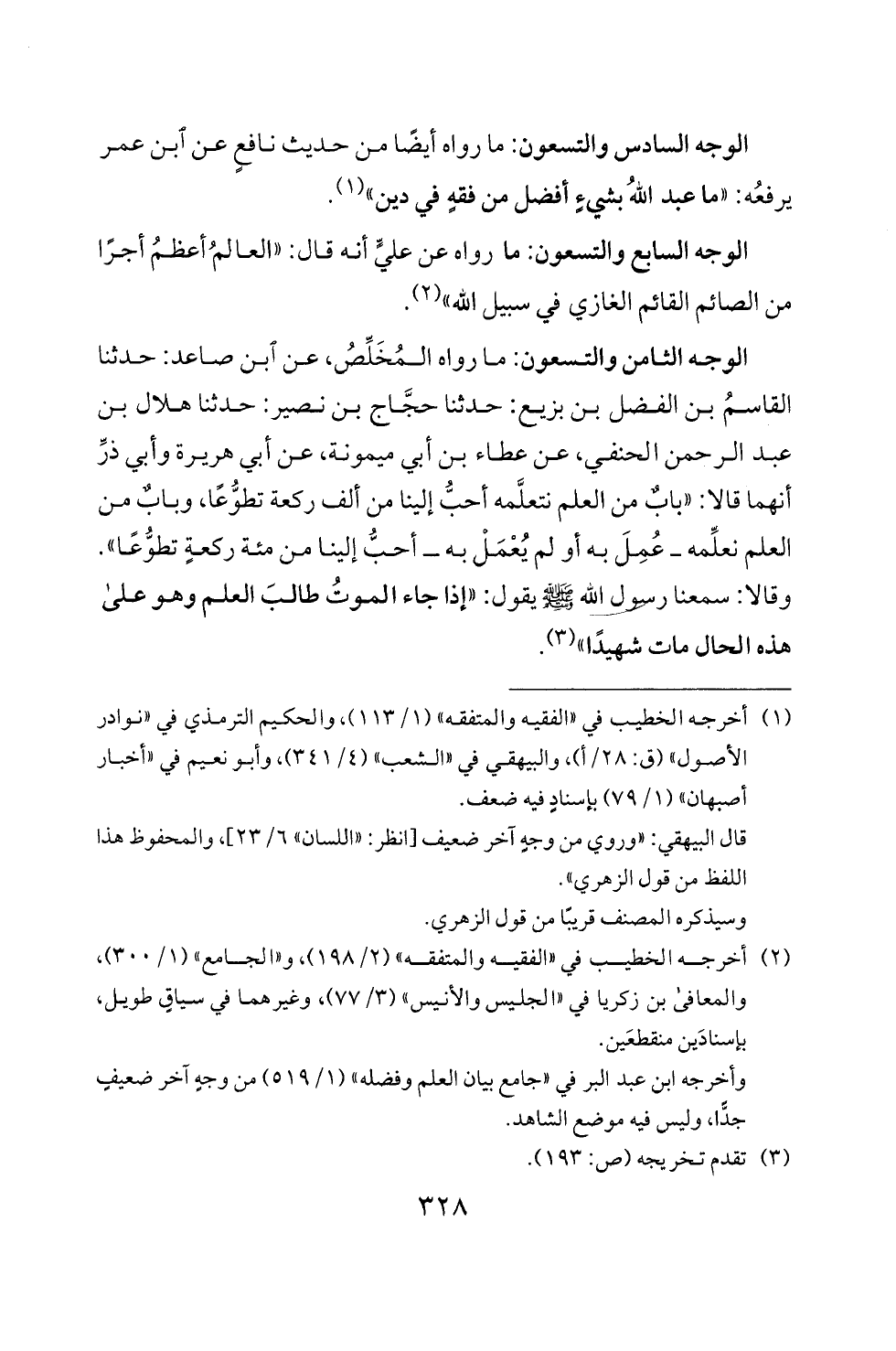 واخرجه ابن عبد البر في " جامع بيان العلم وفضله) " (1/ 9 1 5) من وجه آخر ضعيف