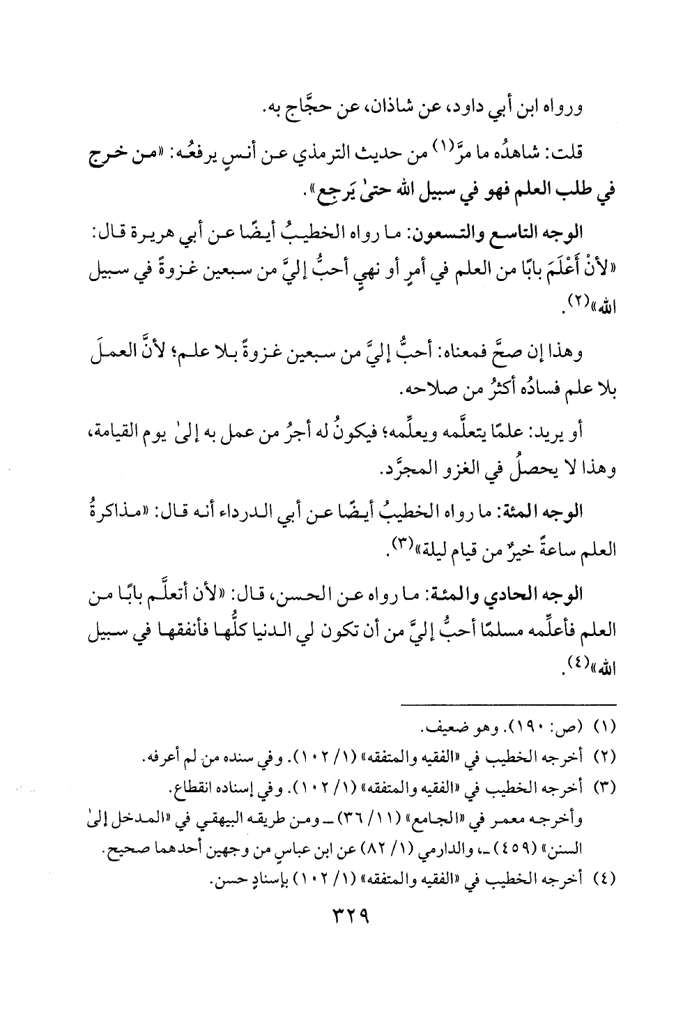 (2) اخرجه الخطيب في " الفقيه والمتفقه " (1/ 2 0 1). وفي سنده من لم اعرفه.