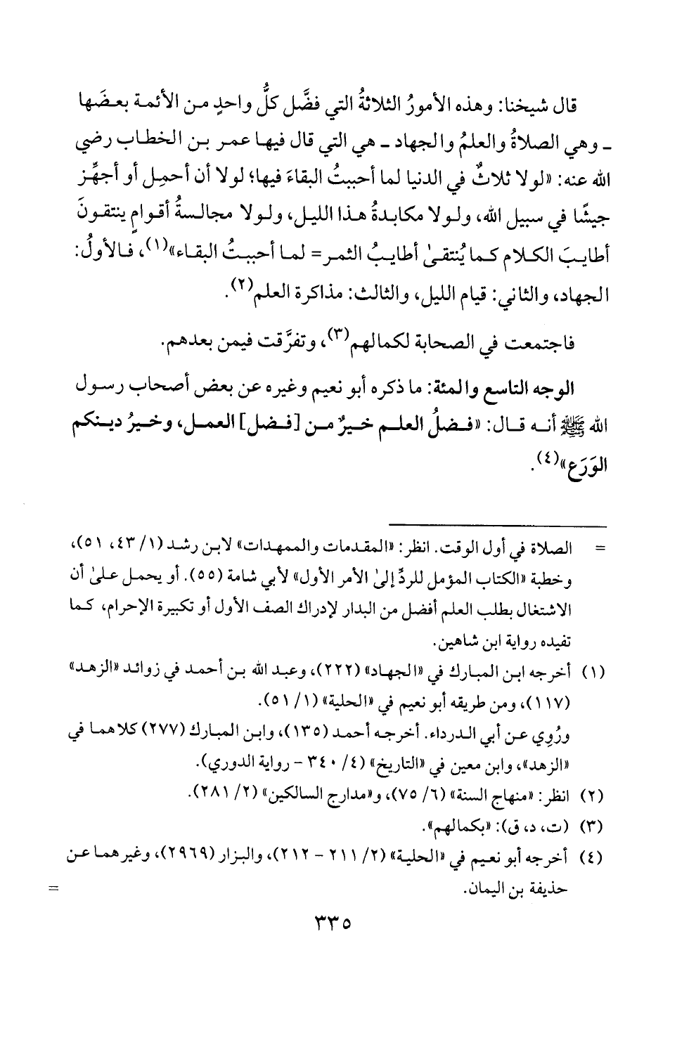 - وهي الصلاة والعلم والجهاد - هي التي قال فيها عمر بن الخطاب رضي