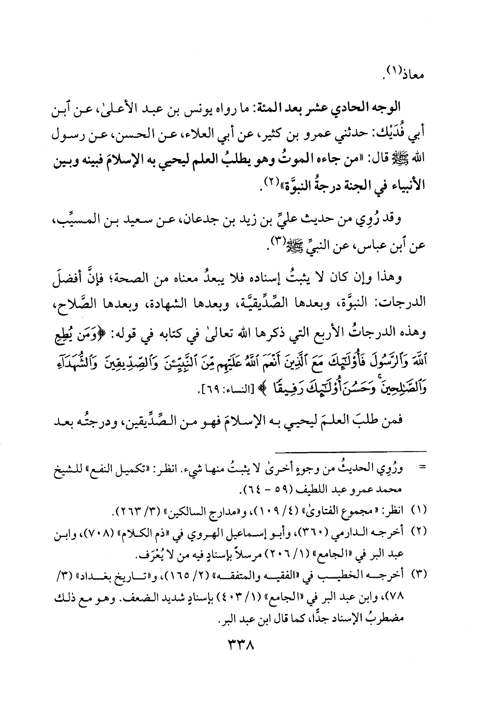 الله! و قال: "من جاءه ا لموت وهو بطلب العلم ليحصي به الاسلام فبينه وبين