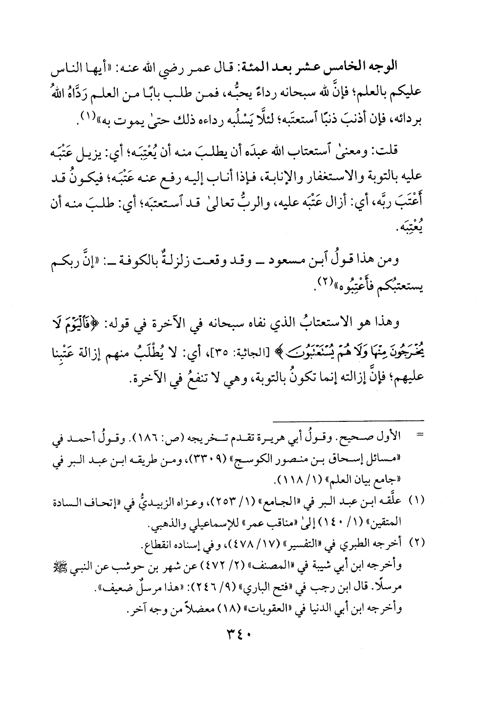 ومن هذا قول ابن مسعود - وقد وقعت زلزلة بالكوفة -: " إن ربكم