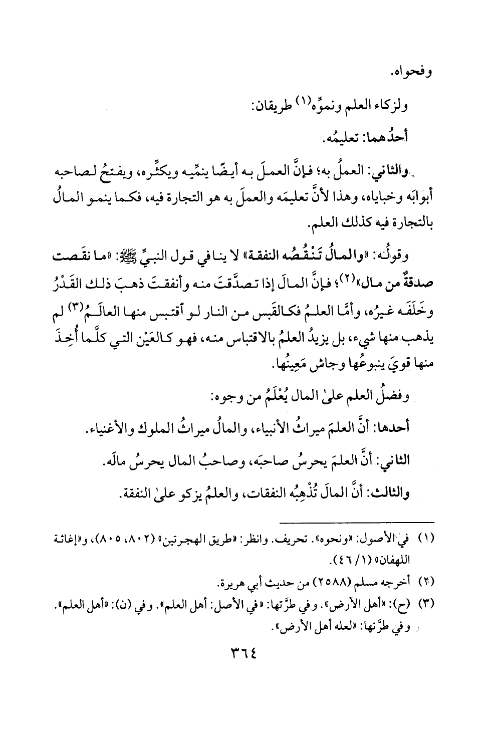 يذهب منها شيء، بل يزيد العلم بالاقتباس منه، فهو كالعين التي كلما أخذ