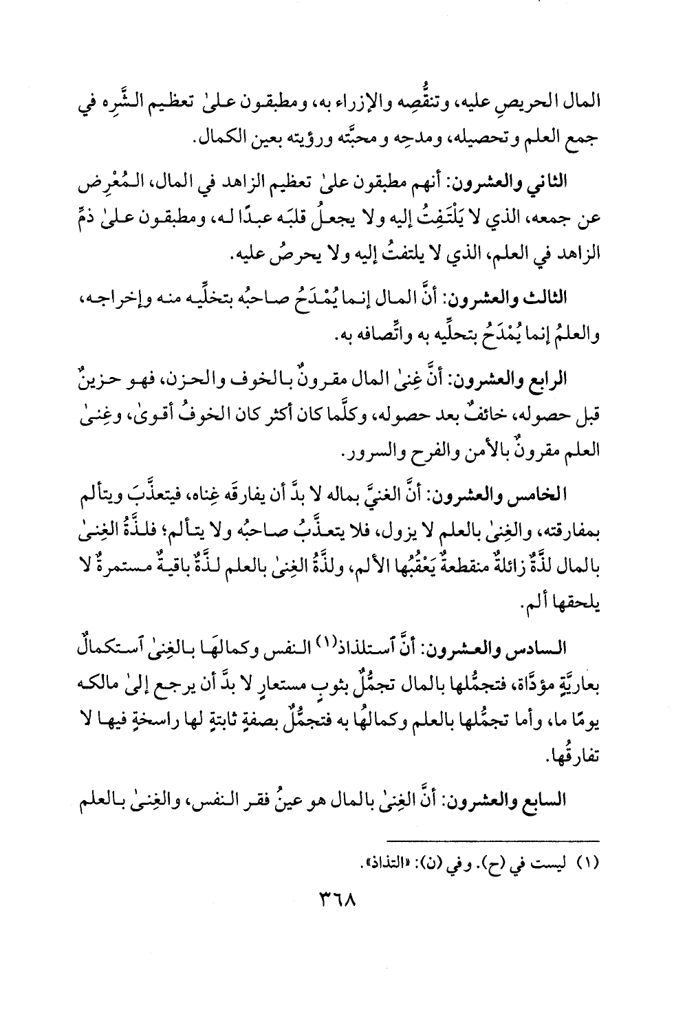 السادس والعشرون: أن استلذاذ (1) النفس وكما لها بالغنى استكمالم