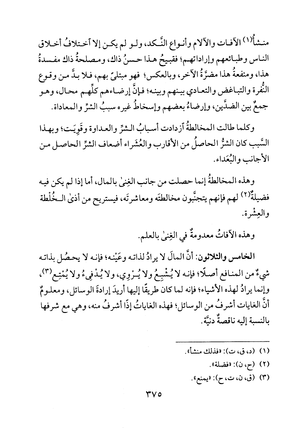 ا لخامس والثلاثون: أن المال لا يراد لذاته وعينه؛ فإنه لا يحصل بذاته