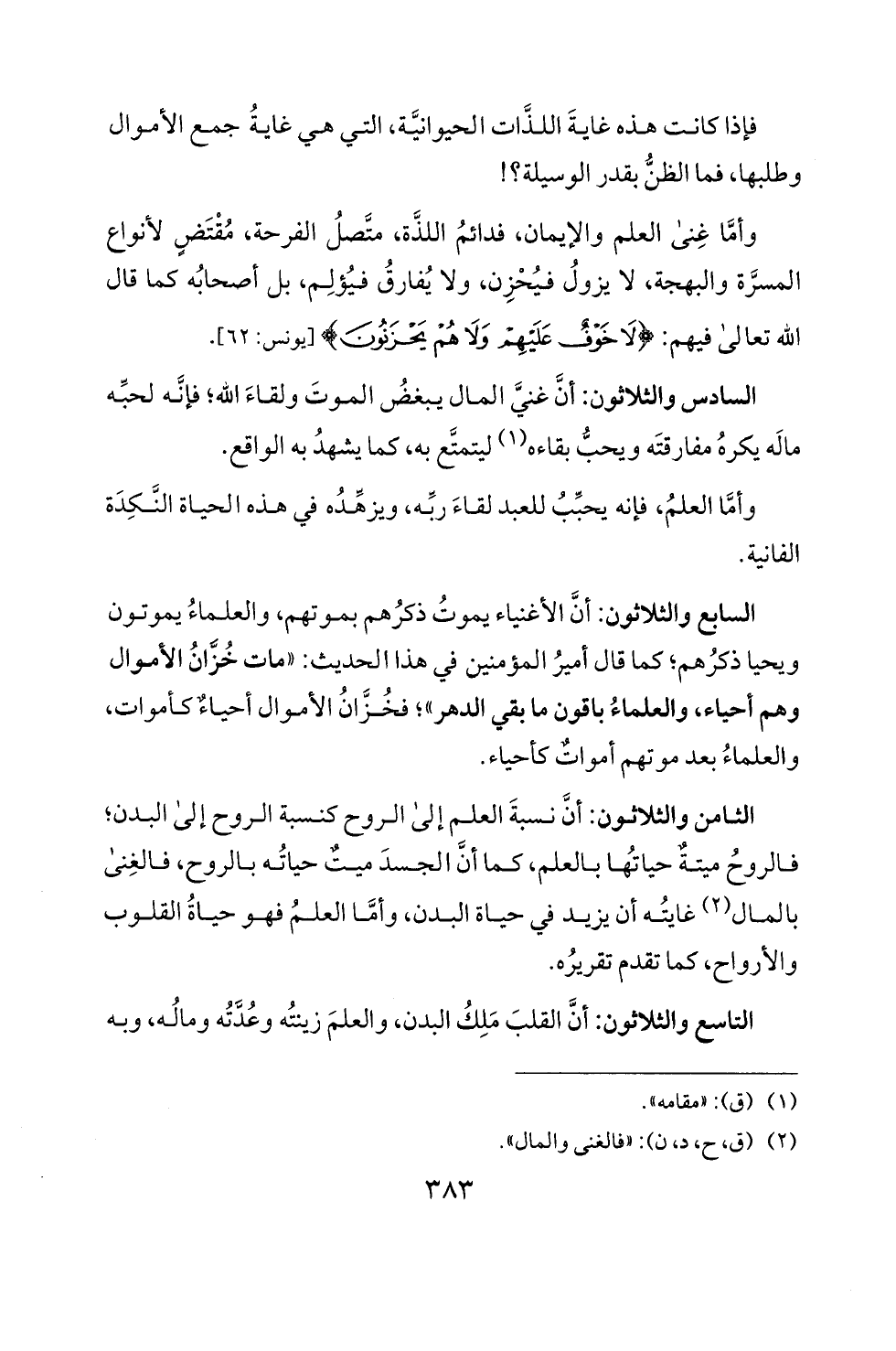 التاسع والثلاثون: أن القلب ملك البدن، والعلم زينته وعدته وماله، وبه