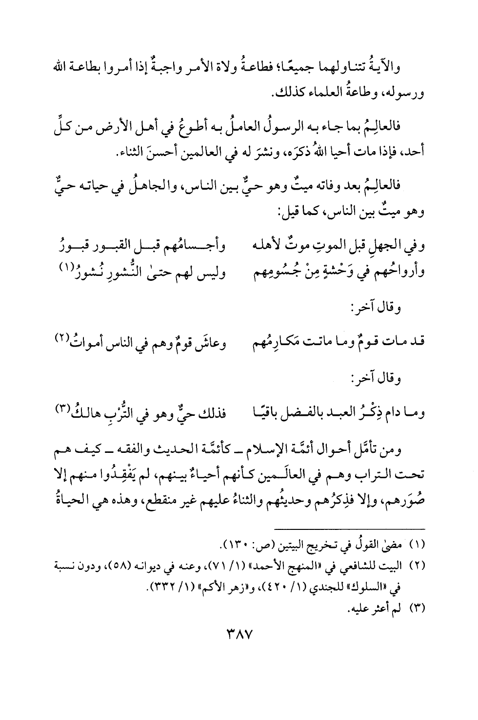 وما دام ذكر العبد بالفضل باقيا فذلك حي وهو في الترب هالك (3)